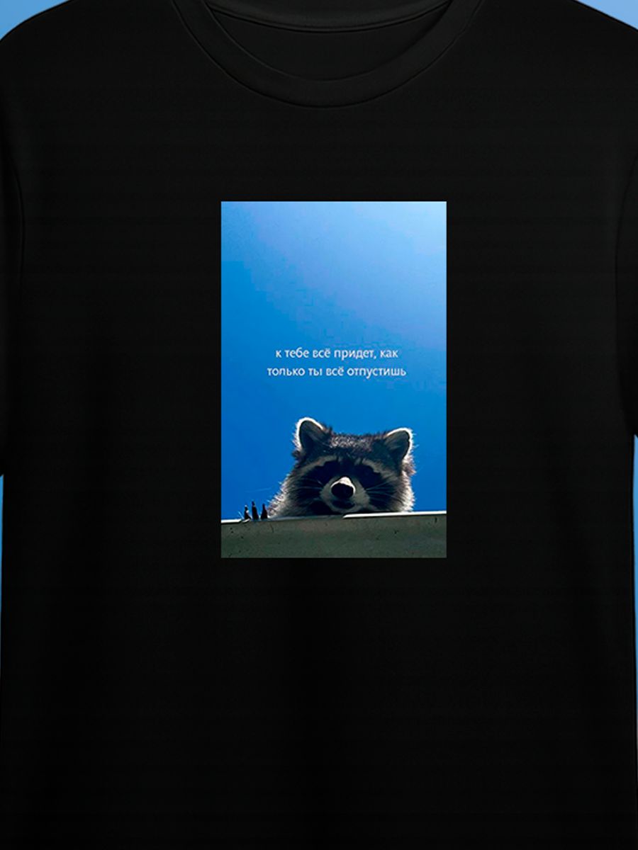 Футболка черная с принтом енот | открыть |